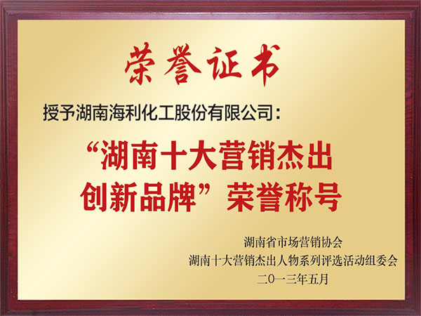 “湖南十大营销杰出创新品牌”荣誉称号